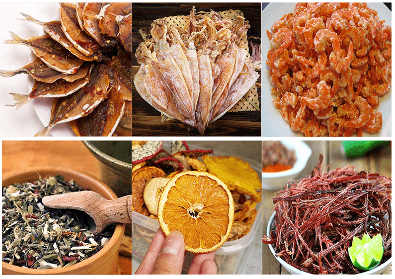 Sấy khô là phương pháp làm giảm lượng nước trong thực phẩm giúp ngừa vi khuẩn xâm hại làm hư hỏng thức ăn. Bạn có thể dùng phương pháp sấy khô để bảo quản thịt, cá, tôm đến các loại rau củ quả trái cây.